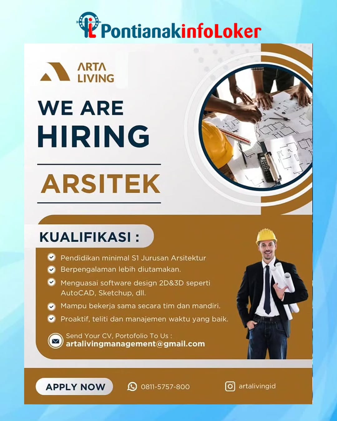 - Pendidikan minimal S1 Jurusan Arsitektur